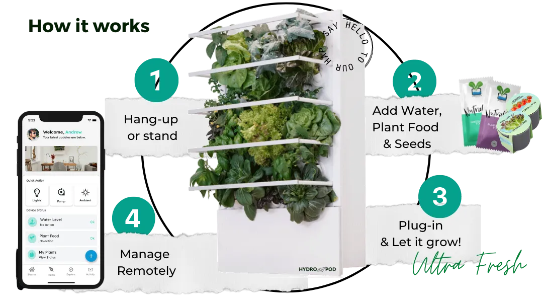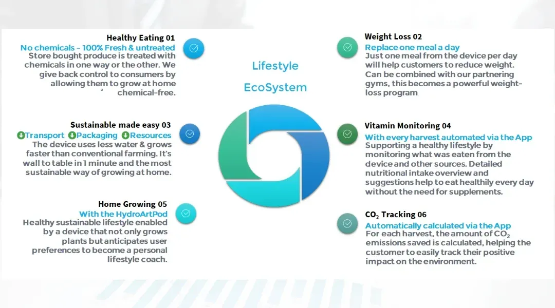 HydroArtPod comes as a full ecosystem and is a lifestyle product that provides a ready-made solution to people on weight-loss programs, those focused on sports & nutrition, parents wanting to feed and educate their children, and urban dwellers who struggle to access fresh, locally-grown food. It's small enough to easily fit in a studio apartment, while big enough to keep you eating fresh every day!